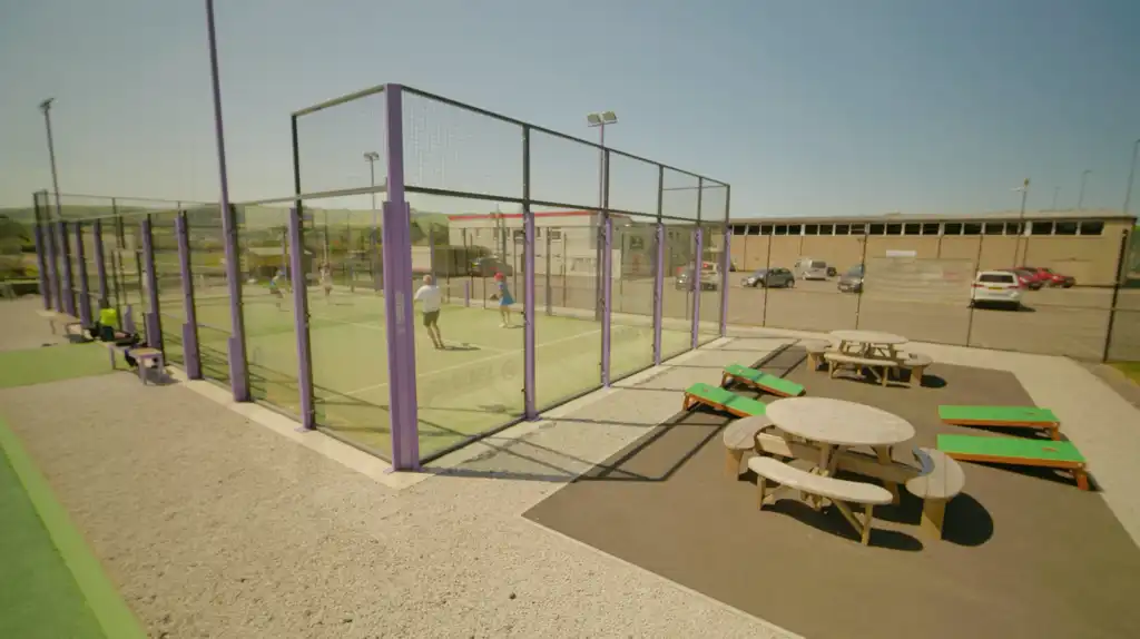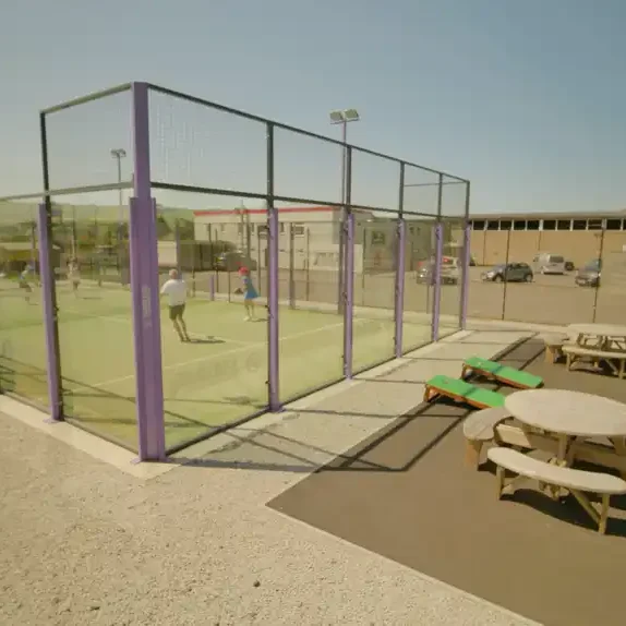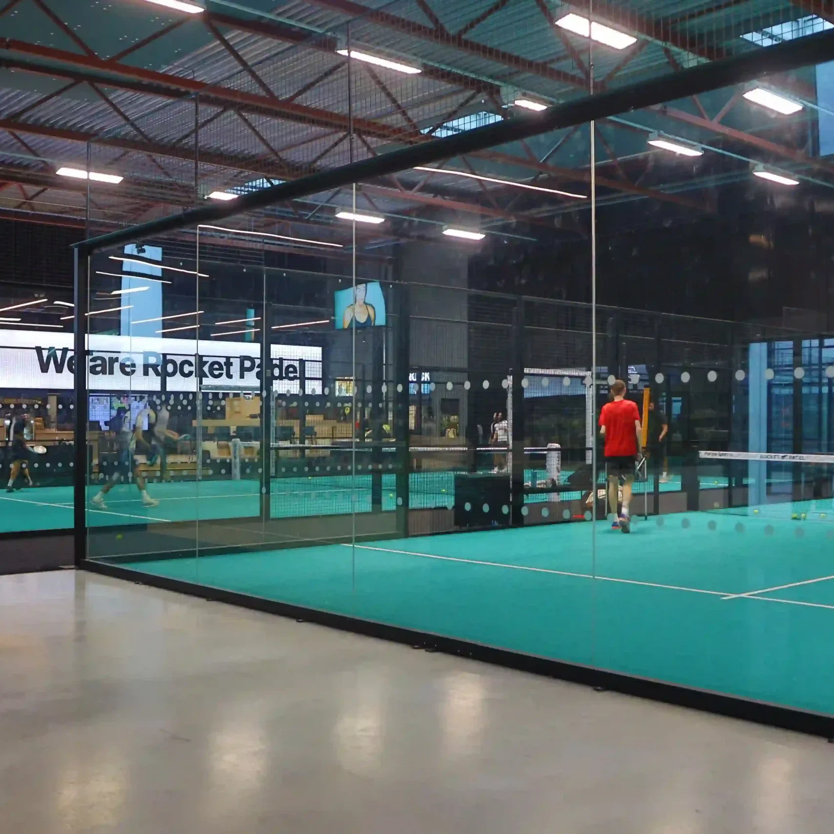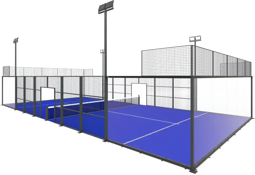 The Panoramic Padel Court features high-strength glass walls that provide an unobstructed view of the surroundings, offering a unique and exciting playing experience.